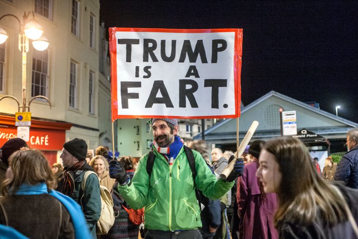 Recent marches I’ve seen have featured uniform signs, everyone carrying the same placard. Recently, the return of a kind of individualism has led to unique, and hand made signs again. These show how engaged, and enraged people are. It is a heartening two fingers to idiot politics.