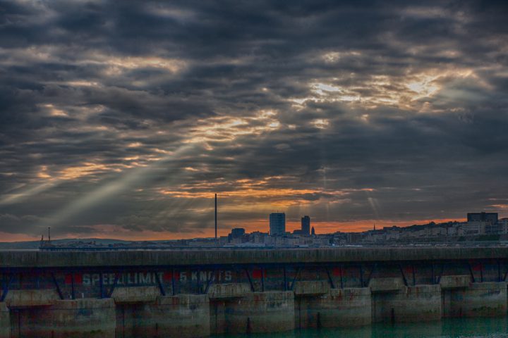 Sunset from the sea wall at Brighton Marina, by Nathan Thomas Jones